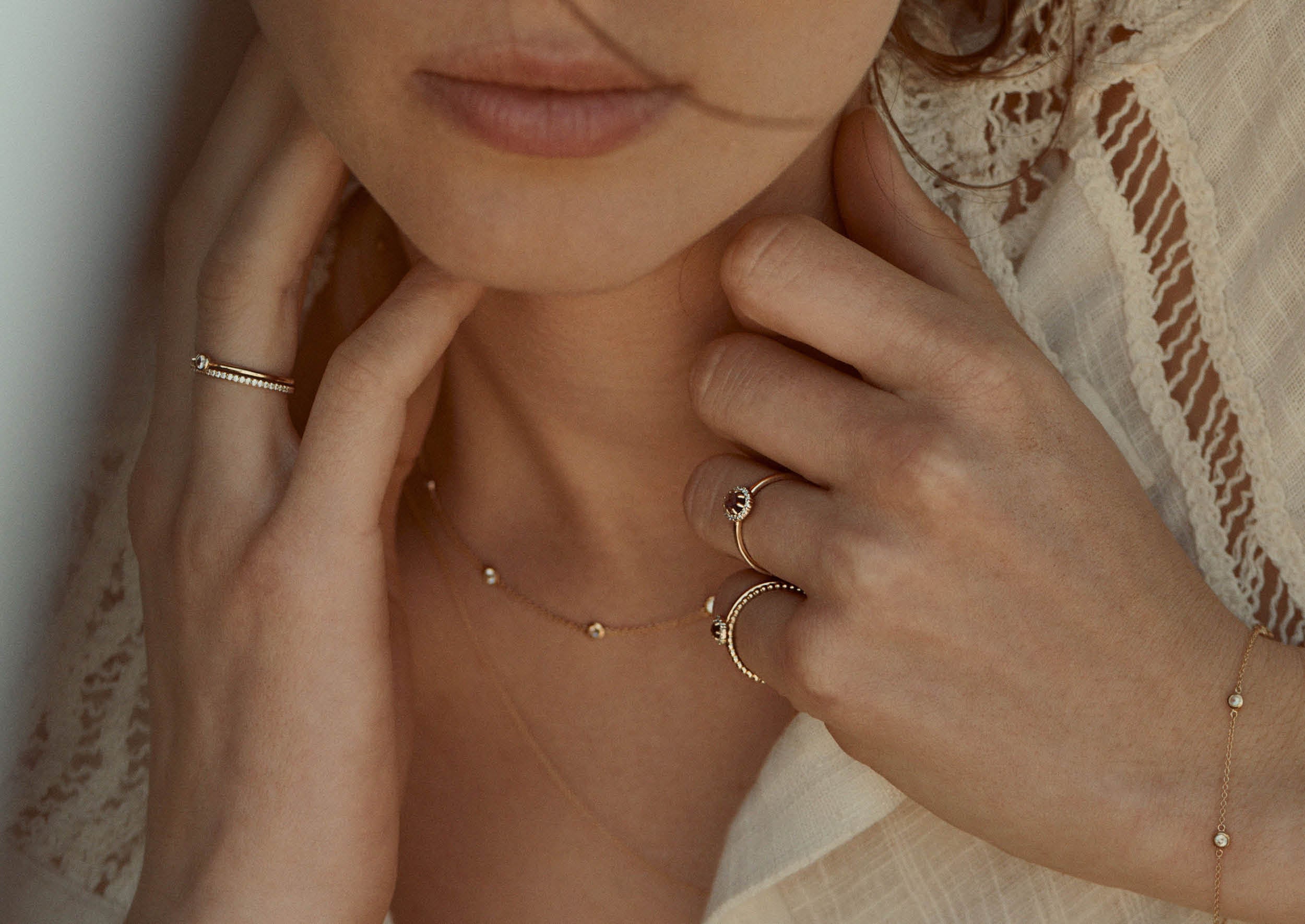 Are you looking for a delicate gold necklace to match any outfit? Or would you like to complete your look with refined ear studs or an eye-catching ring? In Blush's new jewellery collection, you will always discover a piece that suits your style and story.
