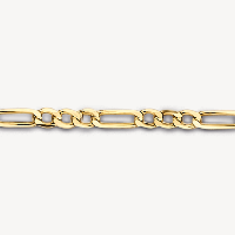 Crafted from 14k yellow gold, this refined link bracelet is a timeless classic. Its elegant Figaro chain and 17.5 cm length ensure an optimal, comfortable fit. Designed for versatile wear, it seamlessly elevates any ensemble, whether worn solo or stacked. A truly sophisticated and strategic addition to your jewellery collection.